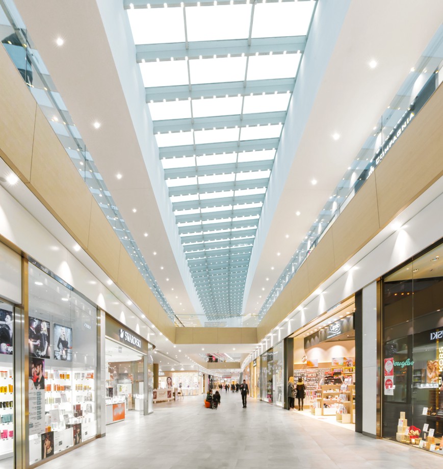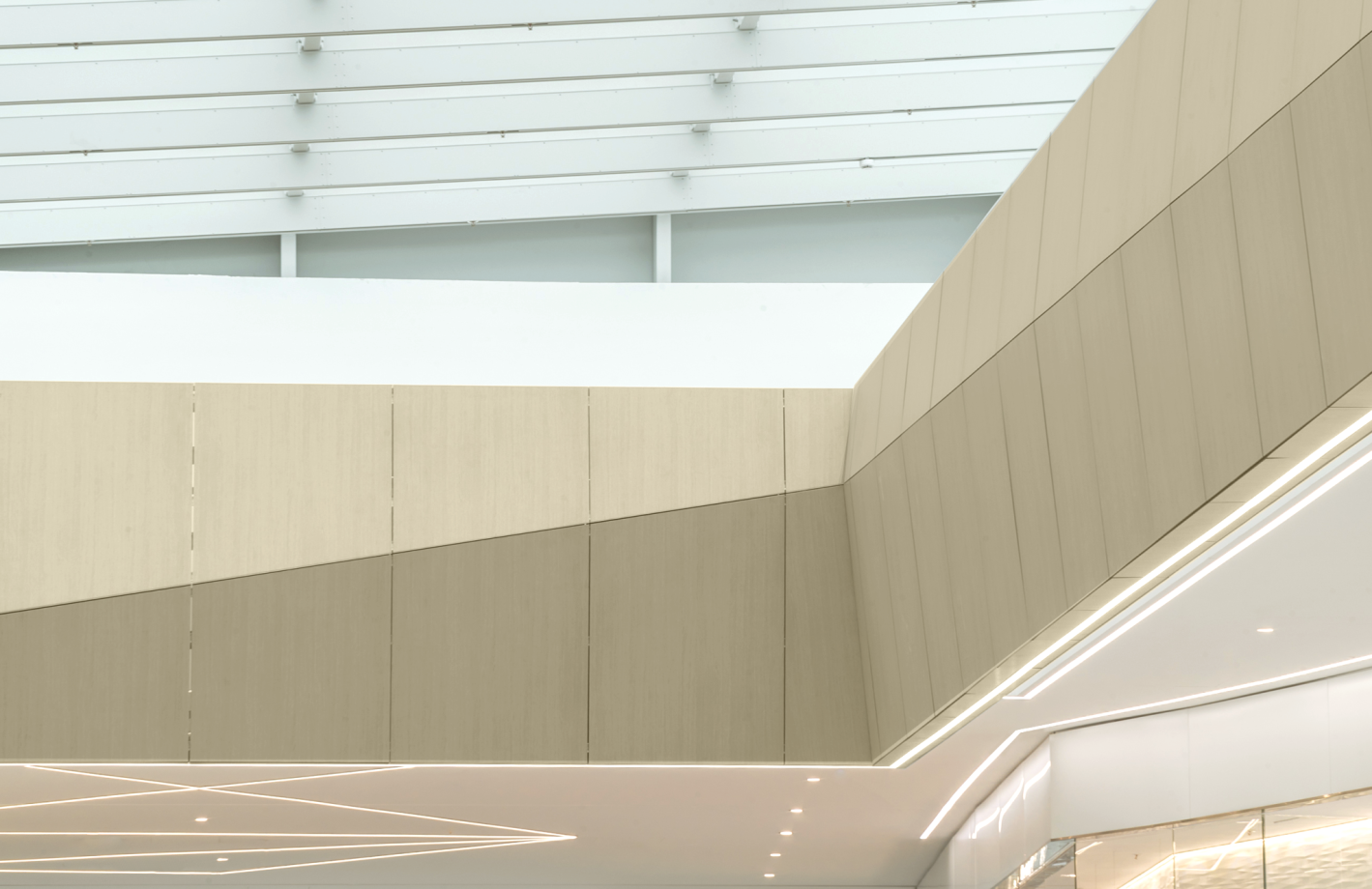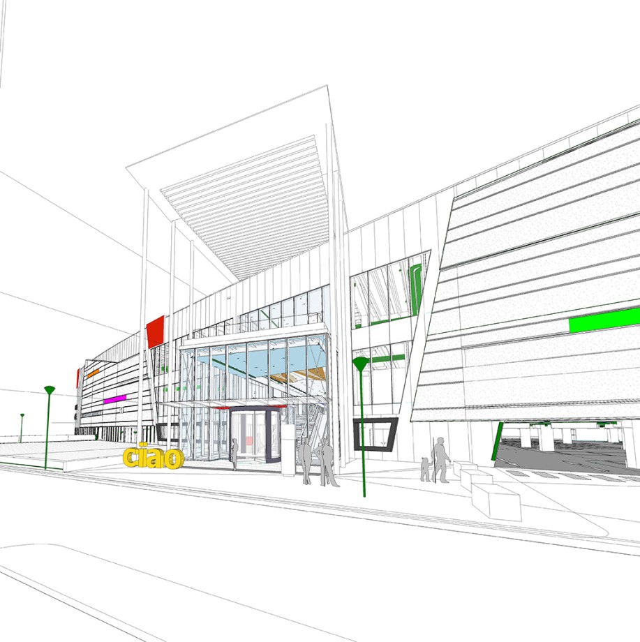 L'edificio ha un carattere distintivo, fortemente caratterizzato dalla gamma di colori, scelti in linea con il branding dei Centri IKEA. Ai livelli commerciali, la facciata è aperta verso l'esterno tramite "fessure" per consentire connessioni tra l'interno e l'esterno. Queste sono situate in tre aree chiave associate ai due nodi principali (ingressi sud e nord), fornendo viste dagli spazi interni principali verso l'esterno. La terrazza della Food Court incoraggia le vedute delle colline a nord. Per l'interno, il tema dominante è l'illuminazione naturale, che permea in modo controllato attraverso i lucernari e i pozzi di luce.